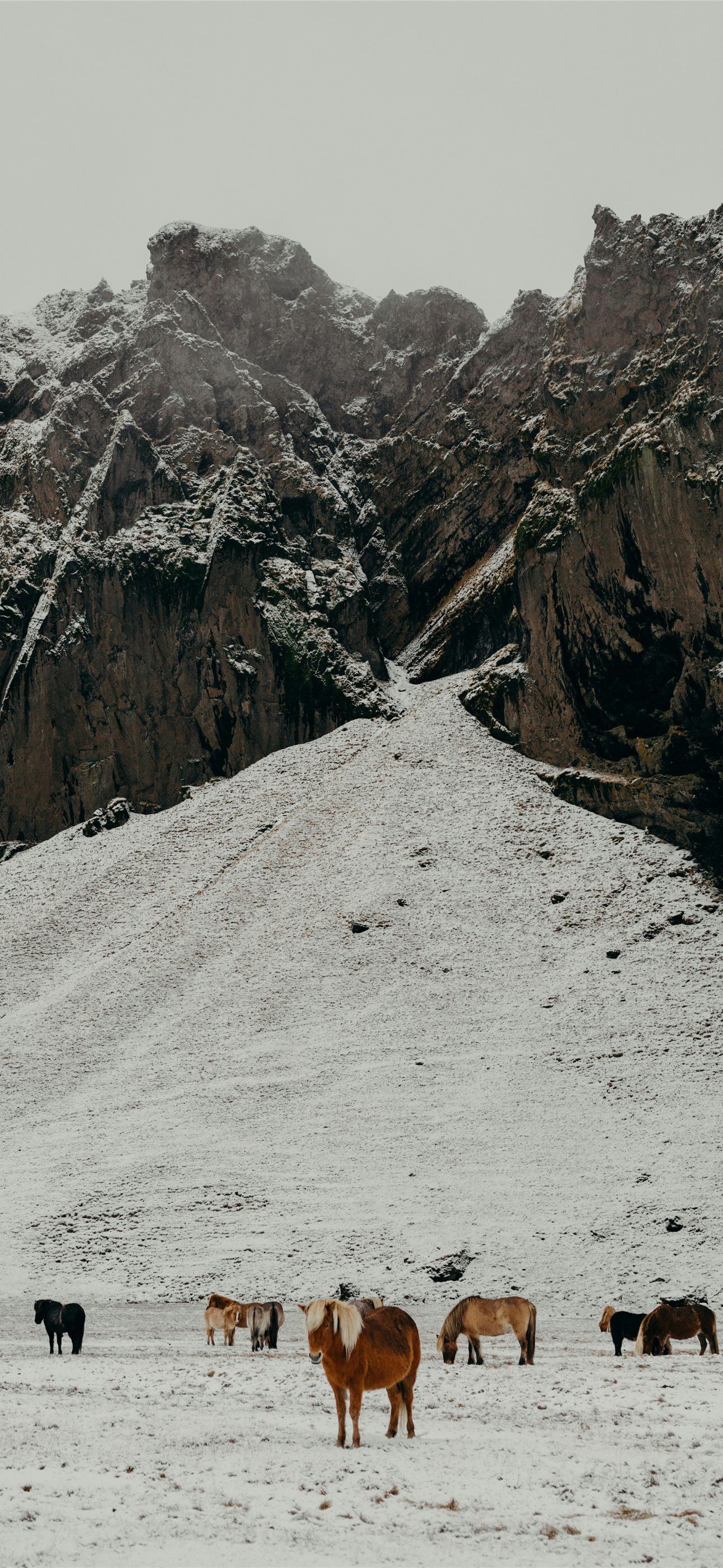 1290x2796 a herd of horses standing on top of a snow covered... - wildlife iPhone Wallpaper